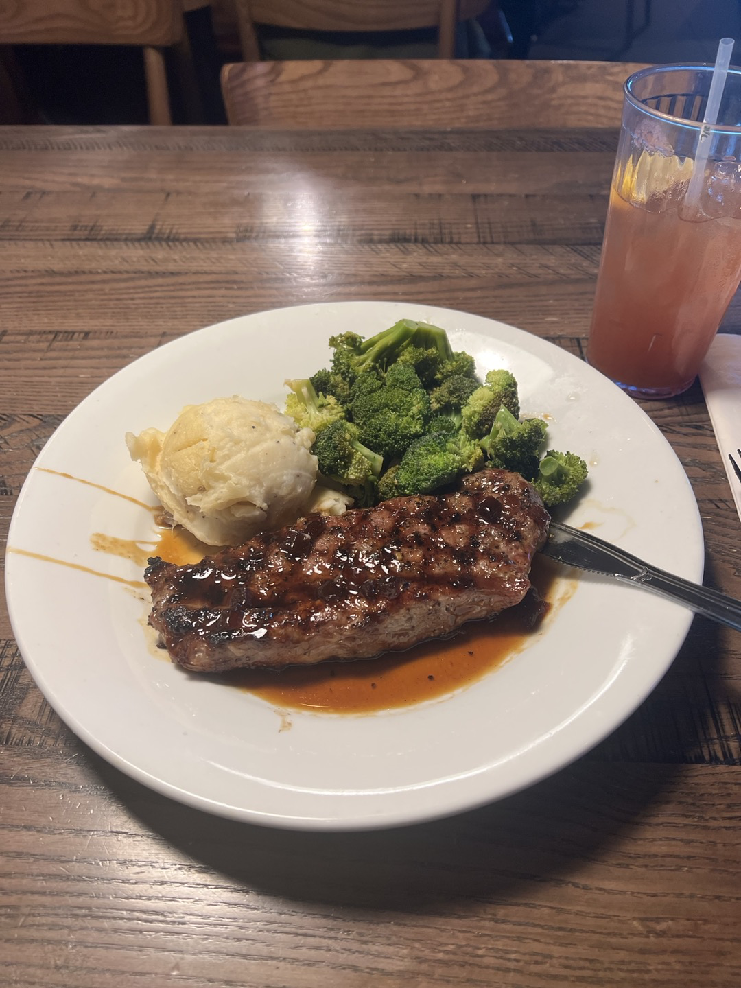 초조하게 5분정도 기다리니, 오렌지 버스가 왔다. 조금 불친절한 버스기사 였지만, 정류장까지 내려 주었다. 그렇게 들어가서 United Airlines 체크인을 하게 되었다. 안내원이 셀프 체크인을 도와주었다. 그리고 모든 짐을 실어서 넣었다. 현재 시각 9시 30분. United Airlines는 2시 22분 비행기였다. 그래서 화장실 다녀왔다가 재정비하고 TGI Fridays가서 스테이크를 시켜먹었다. 그냥 먹기는 그래서 라즈베리 티를 같이 시켰다.